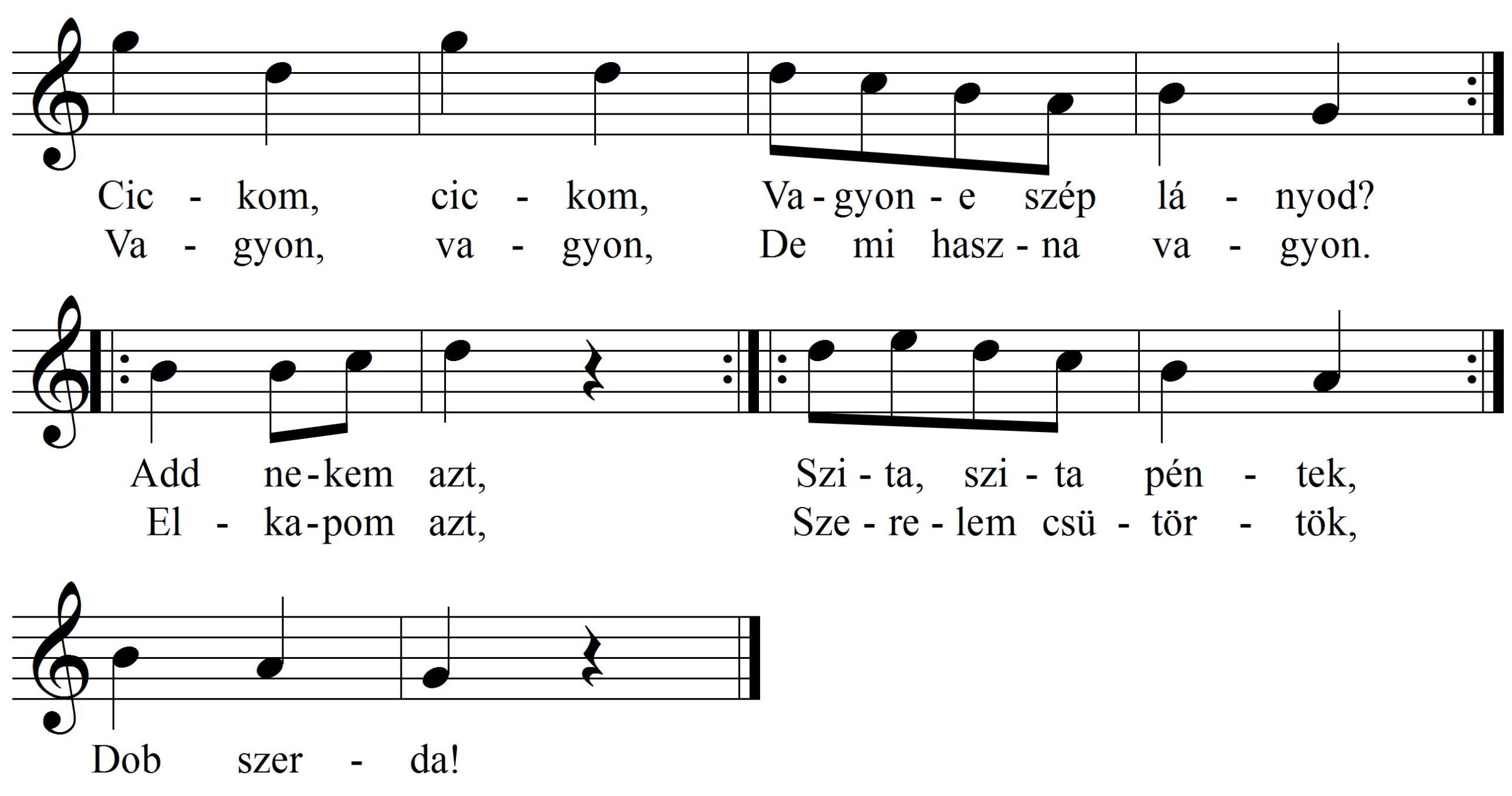 A gyerekek körbe állnak, megfogják egymás kezét, és az alábbi dalt énekelve körbe járnak: