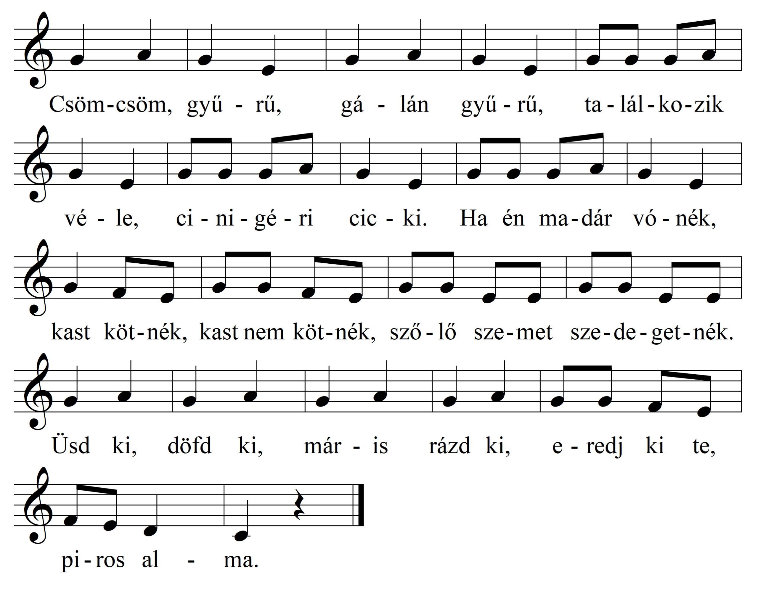 Üsd ki, döfd ki, máris rázd ki, eredj ki te, piros alma.