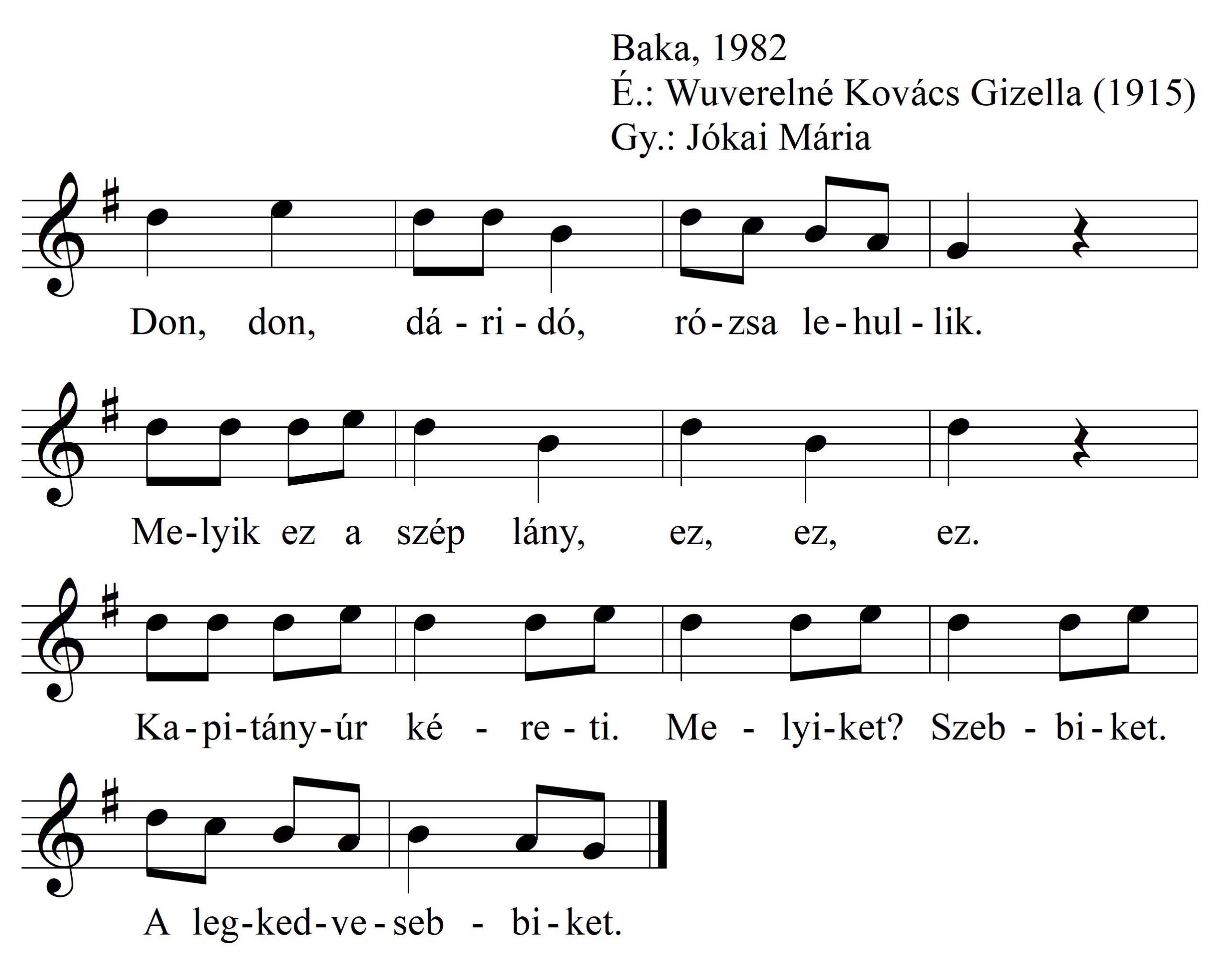 Lánykérős körjáték. Egy gyerek a körön kívül jár, a dal végén választ egyet-egyet, és magával viszi, sorba járnak a gyerekek a kör körül a kérővel. Addig játsszák, míg a kör el nem fogy.