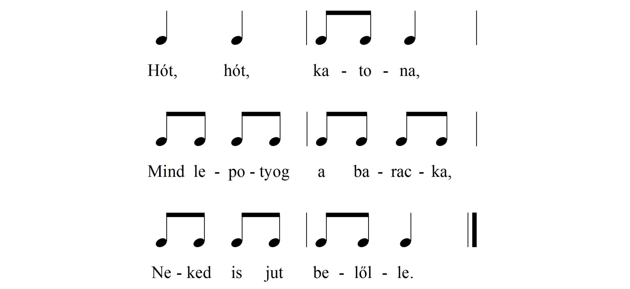 A felnőtt a kisgyereket a térdére ültetve a lovagoltatáshoz hasonlóan mozgatja föl-le; a gyermek mozgatása a baracknak a fáról való lerázását jelképezi.