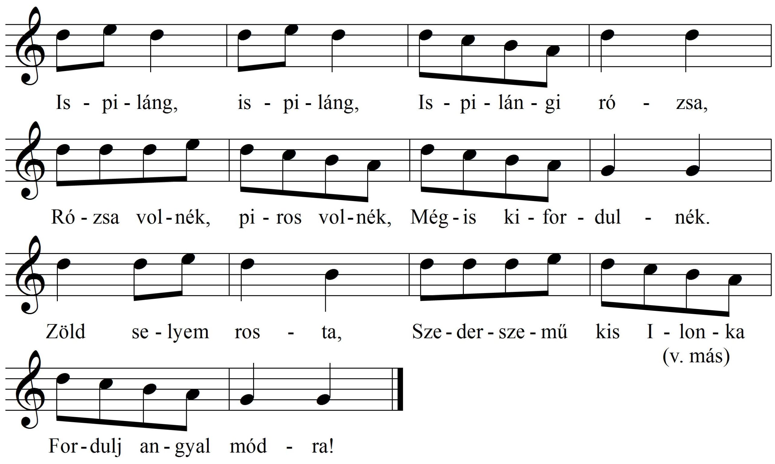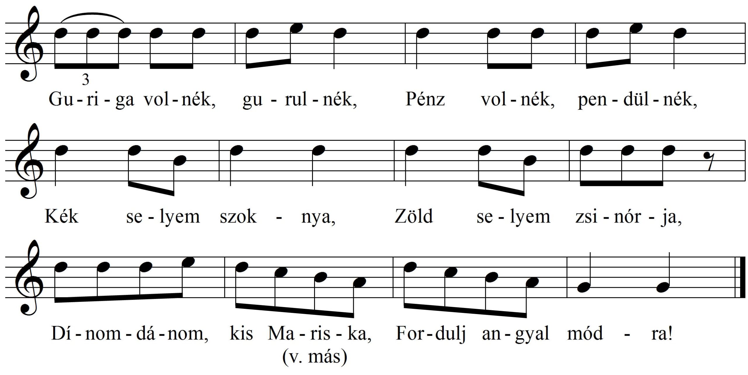 Az ének végén a középen álló rámutatott valamelyik körben állóra, mire az kifordult.