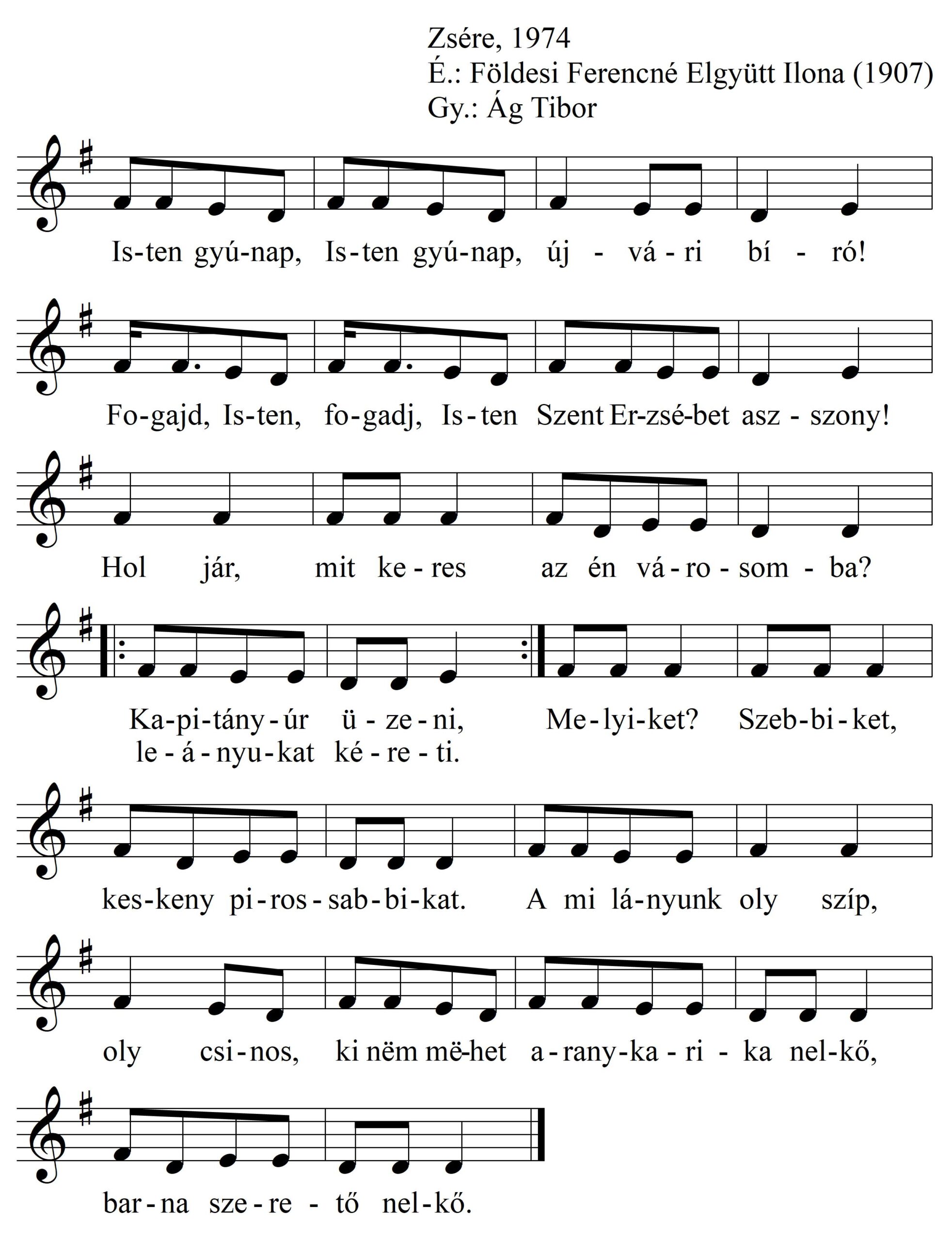 Legények: – Fogadj Isten, fogadj Isten, Szent Erzsébet asszony!