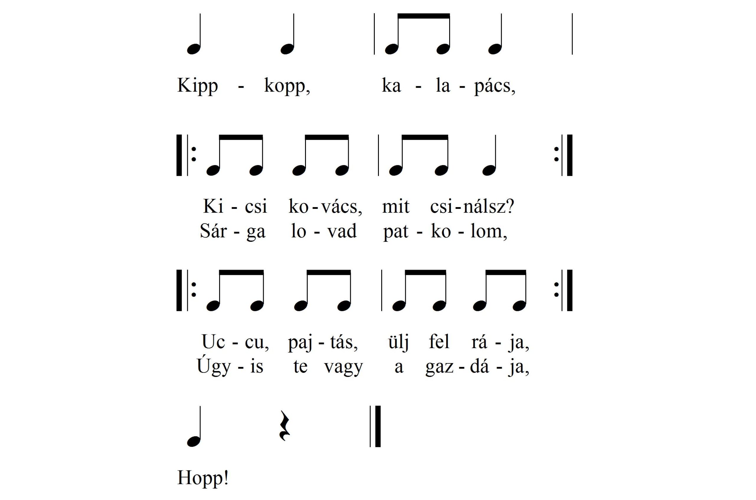 A felnőtt a kisgyereket a térdére ülteti, és így lovagoltatva mondja a versikét: