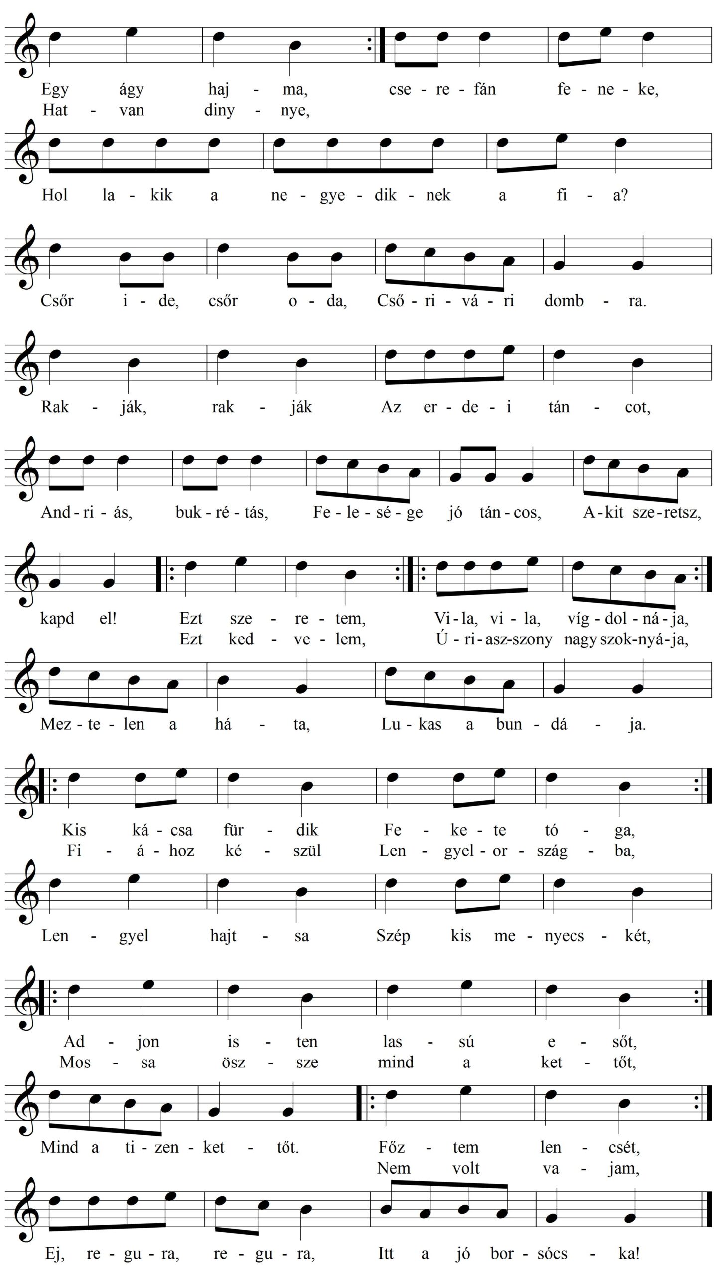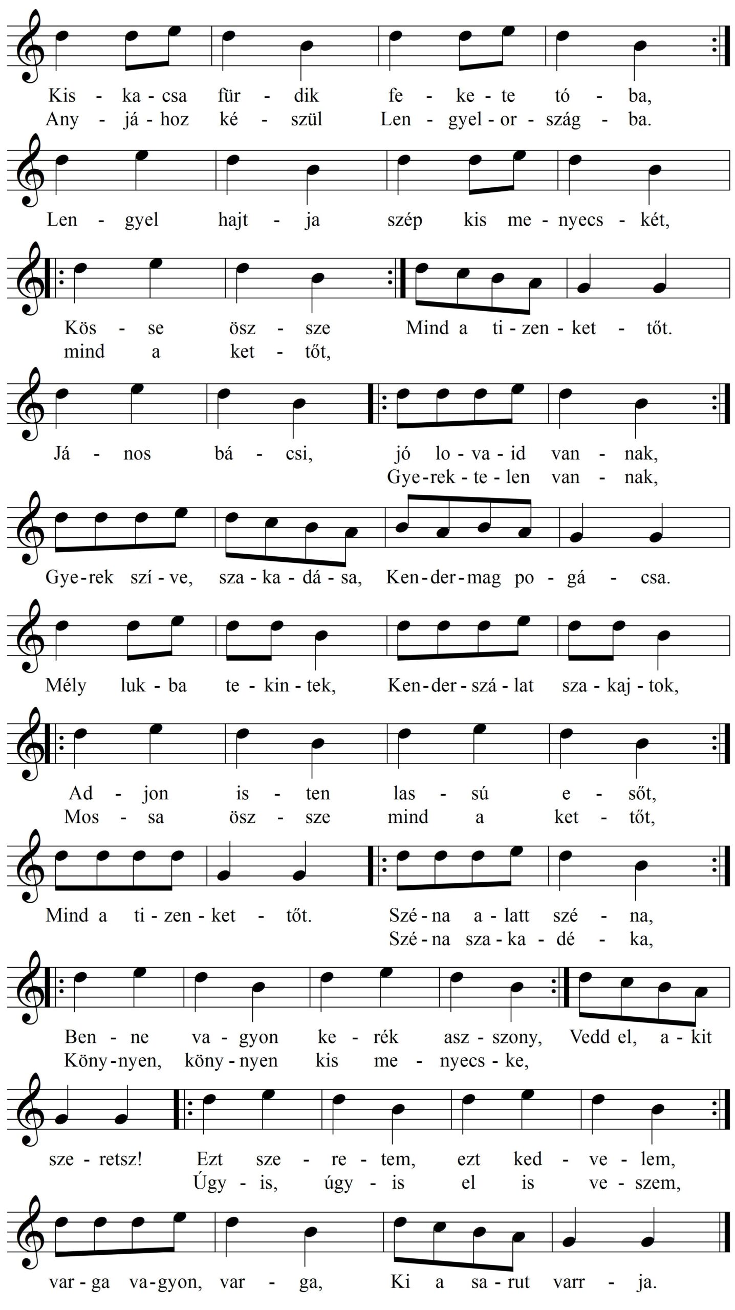 Az „Akit szeretsz, kapd el!“ sor elhangzásakor a kacsa a körláncból valakit elkapott, akivel aztán – az ének fotytatására – keresztezett kézfogással táncra perdült. Most már a kacsa is énekelt.