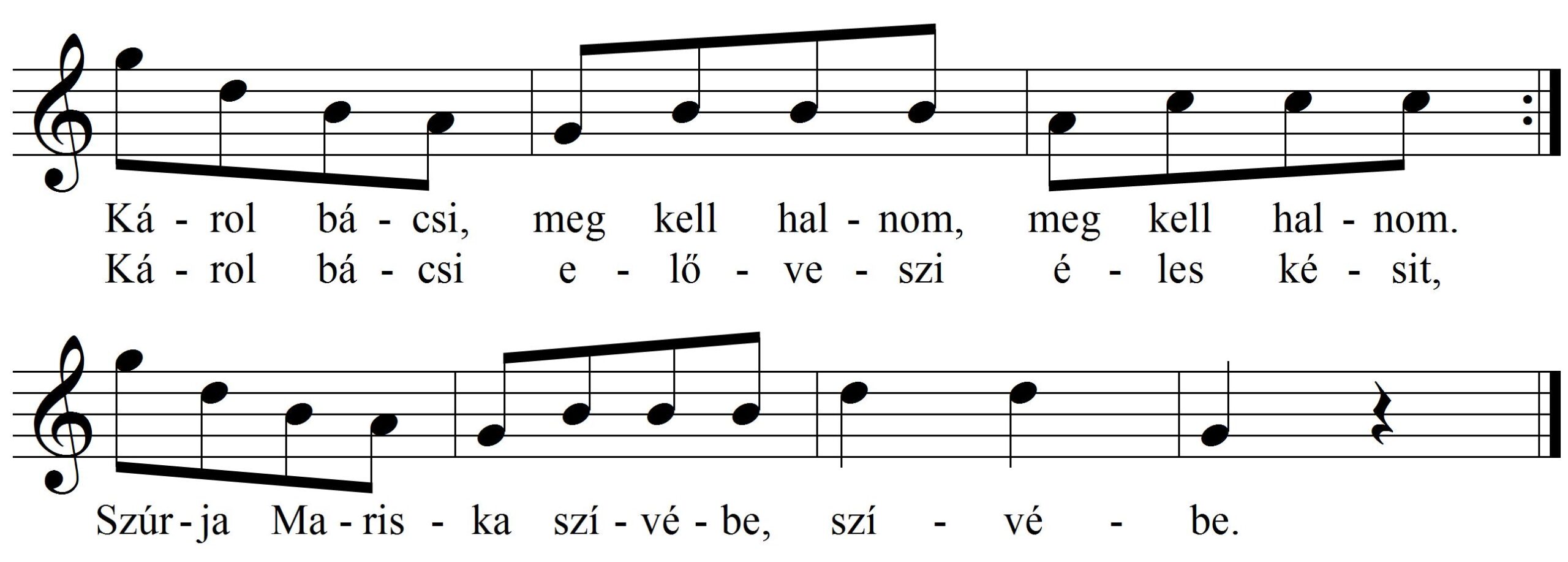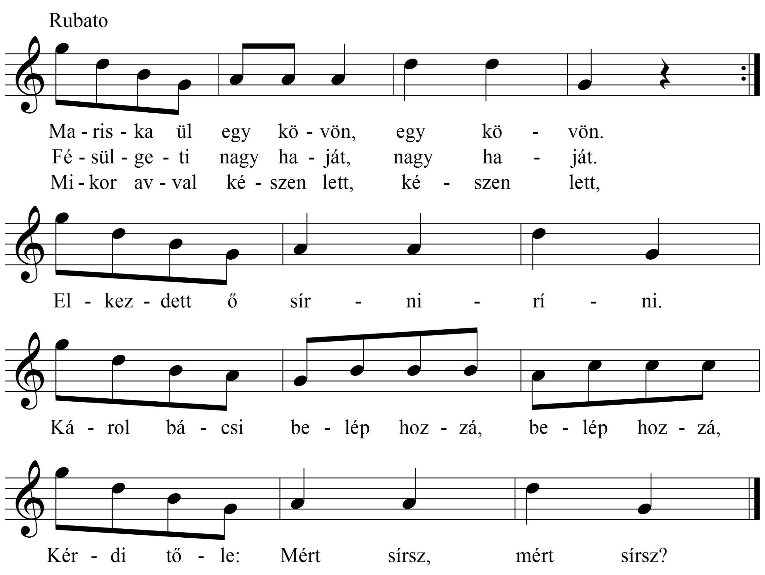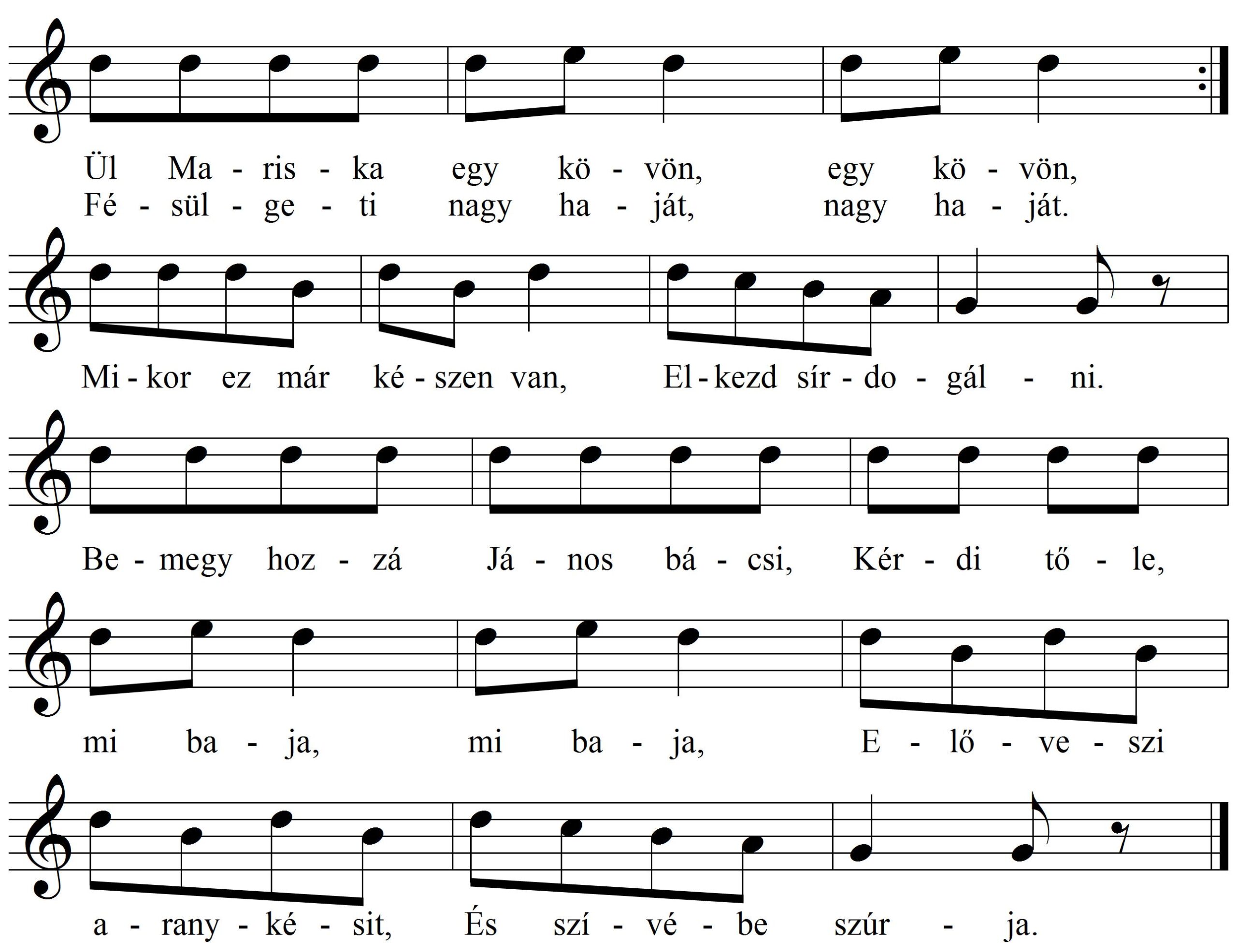 A dal befejező részét a körben állók énekelték. Éneküket tapssal kísérték:
