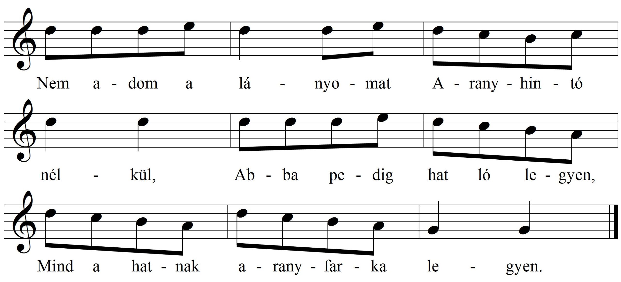 – Réce-ruca (v. Adjonisten), fogadom! – Majd megkérdezi: – Mit kerüli, mit kerüli az én házam táját?