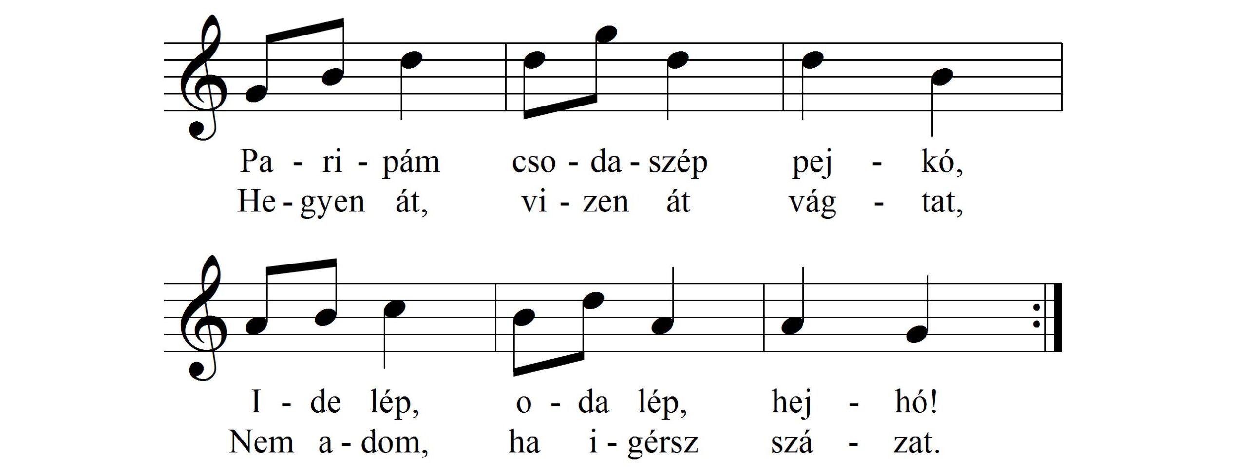 A felnőtt a térdén lovagoltatott kisgyereknek az alábbi dalocskát énekli: