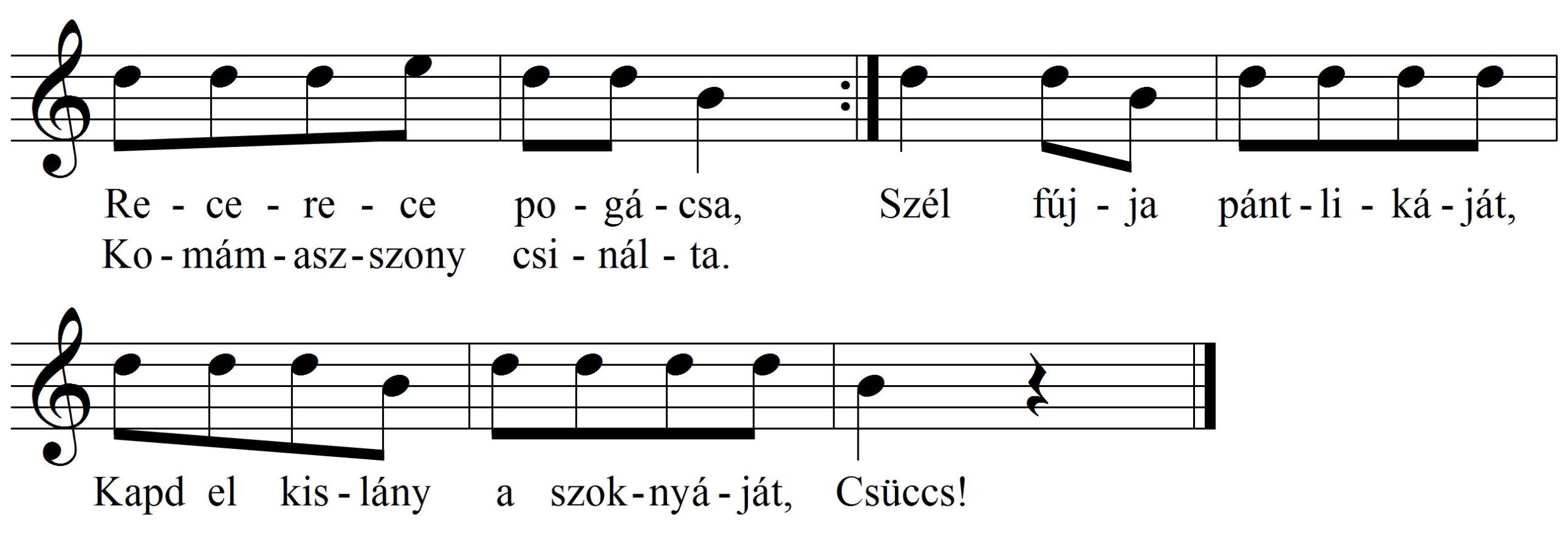 A gyerekek kézfogással körbe állnak, majd körbe járva éneklik: