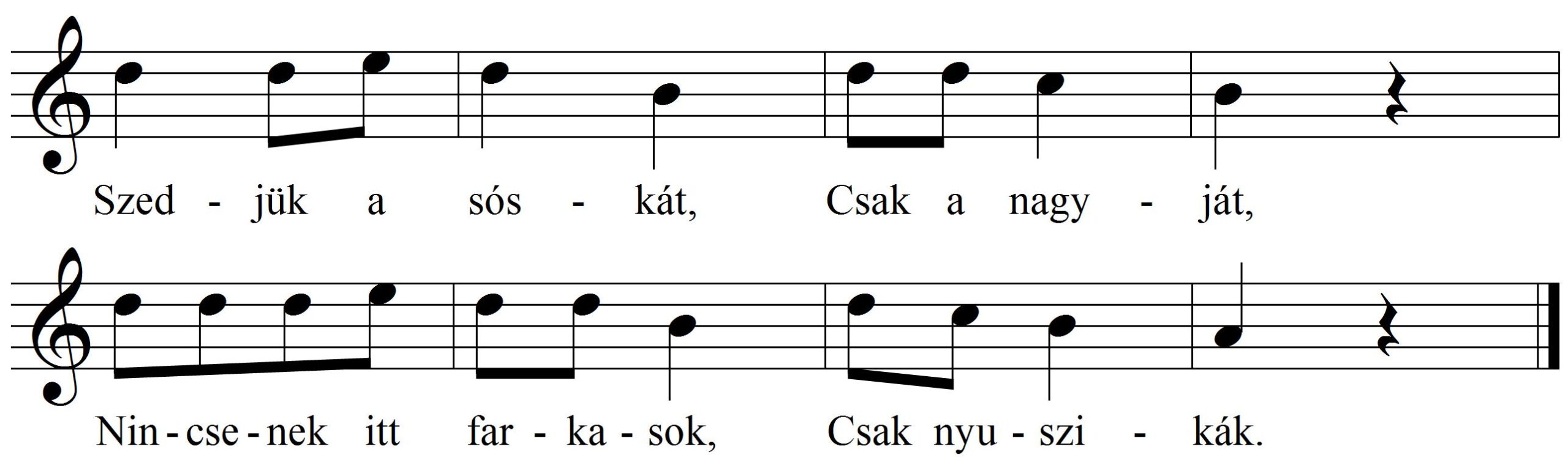 Ismeretes a játéknak még egy másik változata is, amikor is a játékosok a „farkasok“ helyett egy „csőz“-t jelölnek ki, a többiek pedig a „mókuskák“. A dalszöveg változata: