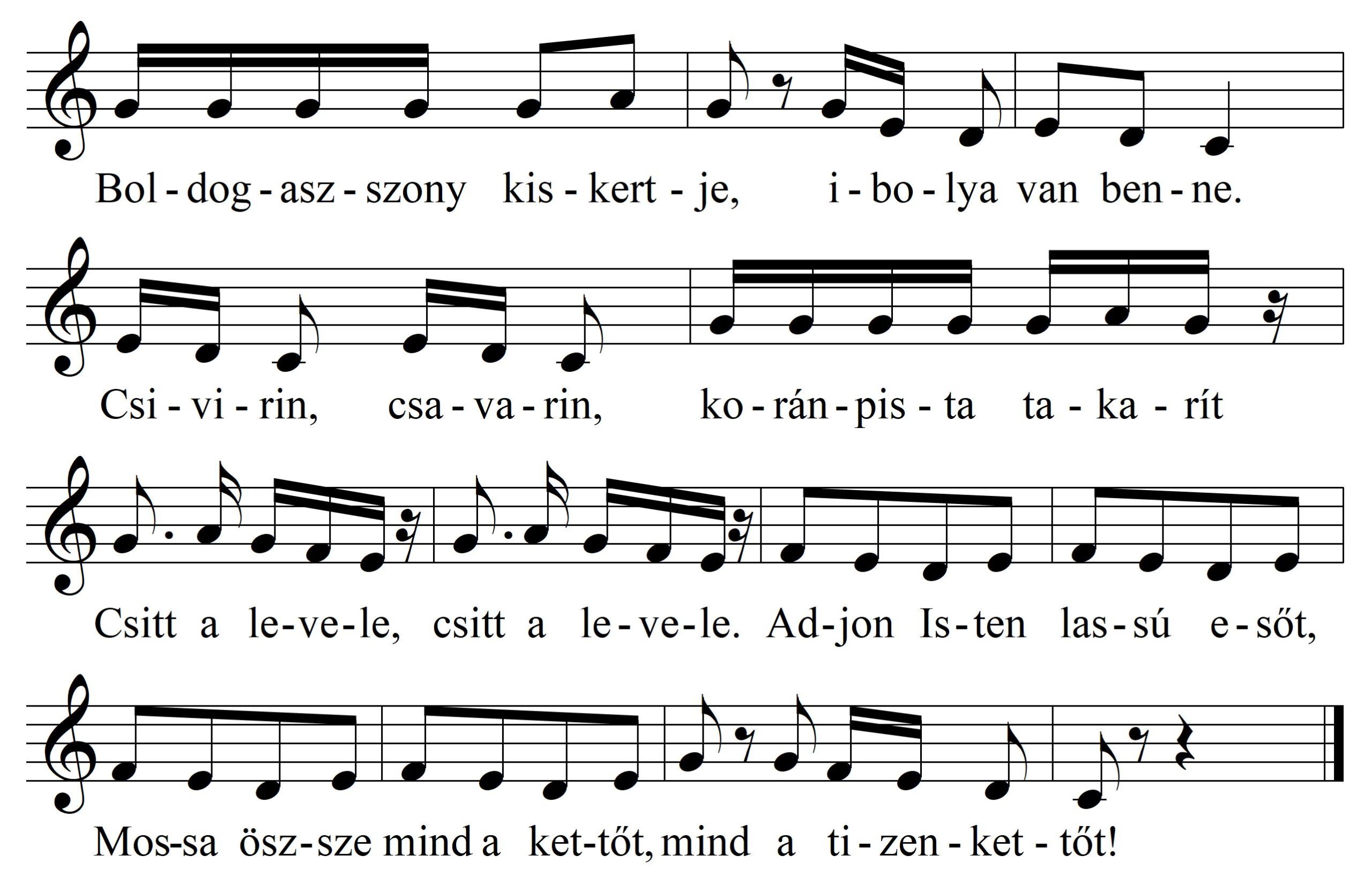 A szereplőket kiszámolóval választják meg. Két kislány áll a körben, kendőt tartanak a kezükben. A szövés mozdulatait utánozzák, a kör menetirányával megegyezően haladnak. Velük ellentétes irányban, a körön kívül is jár egy szereplő. A dallam végén mindenki megáll, elengedik a kezüket, a körön kívül járó kislány megkérdezi a szövő gyerekektől, akik a kör közepén álltak:
