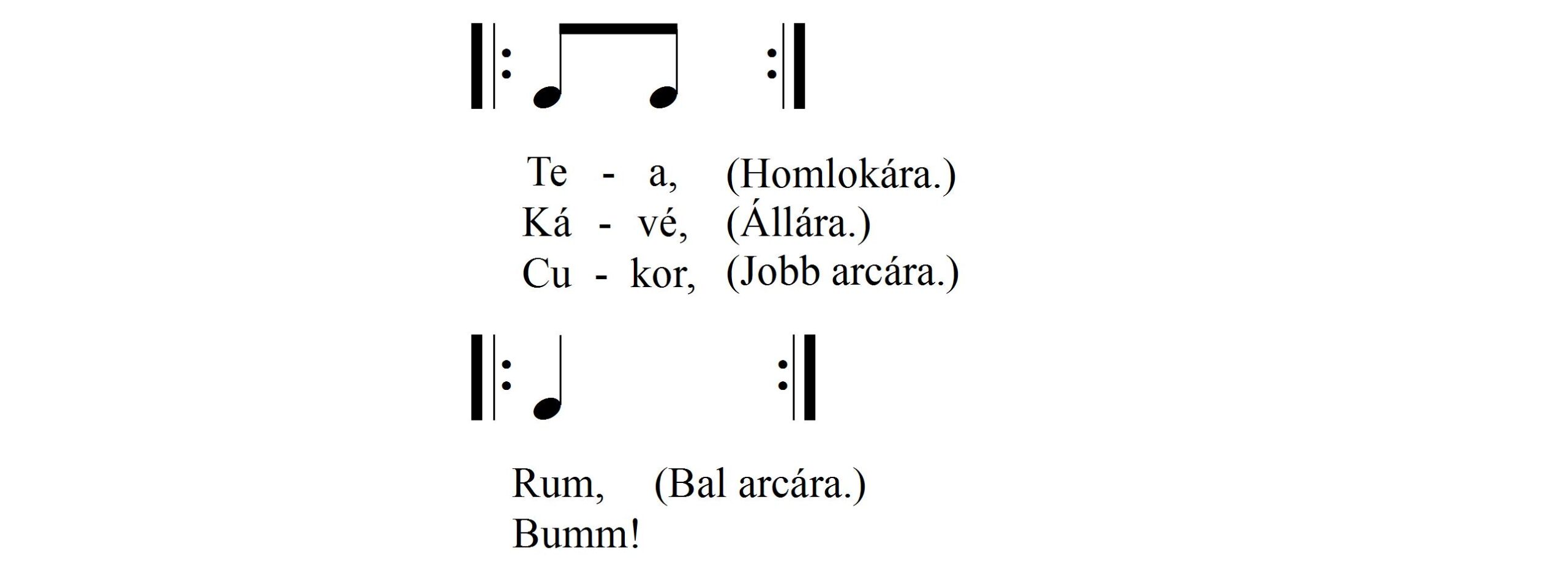 A mondóka végén tenyerükkel enyhén a gyermek orrára ütnek.