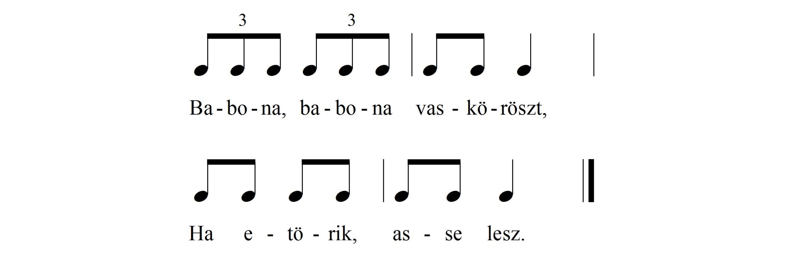 Amikor a játékos a testrészére helyezett tárggyal végzi a feladatot, a többiek a következő versike ritmizált mondásával kísérik annak végrehajtását: