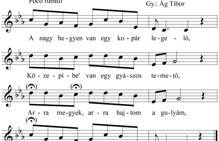 1. A nagy hegyen van egy kopár legelő, Közepibe van egy gyászos temető, Arra megyek, arra hajtom a gulyám, Fölkeresem...