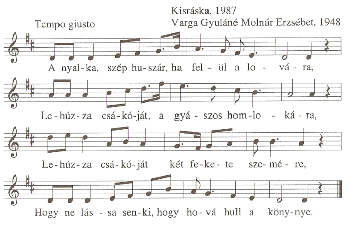 A nyalka szép huszár ha felül a lovára (ének, alkalomhoz nem kötött dal, Felnőttek népdalai)