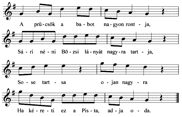 A prücsök a babot nagyon rontja, Sári néni Bözsi lányát nagyra tartja, Sose tartsa olyan nagyra Ha kéreti ez a...