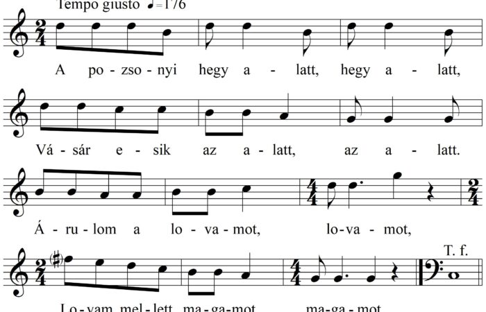 1. A pozsonyi hegy alatt, hegy alatt Vásár esik az alatt, az alatt, Árulom a lovamot, lovamot, Lovam mellett magamot,...