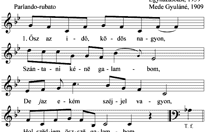 1. Ősz az idő, ködös nagyon, Szántani kénë galambom, De jaz ekém széjjel vagyon, Hol szëdjem összë galambom. 2. Ekë...