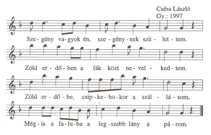 Szegény vagyok, szegénynek születtem.Zöld erdőben a fák közt nevelkedtem.Zöld erdőbe, csipkebokor a szállásom,Mégis a faluba a legszebb lány a párom.