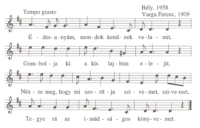 1. Édesanyám, mondok kendnek valamit,Gombolja ki a kis lajbim elejit,Nézze meg, hogy mi szorítja a szívemet,Tegye rá az imádságos könyvemet.2....