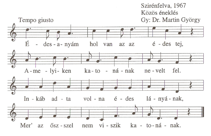 1. Édesanyám hol van az a édes tej,Amelyiken katonának nevelt fel.Inkább adta volna édes lányának,Mer az ősszel nem viszik katonának.2....