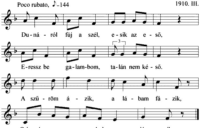 1. Dunáról fúj a szél, esik az eső, Eressz be galambom, talán nem késő. A szűröm ázik, a lábam fázik, Csizmám...