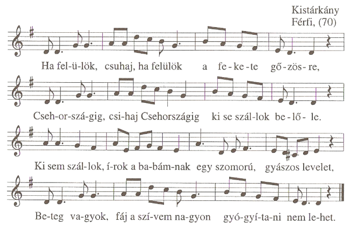 1. Ha felülök, csuhaj, ha felülök a fekete gőzösre,Csehországig, csihaj Csehországig ki se szállok belőle.Ki sem szállok, írok a babámnak...