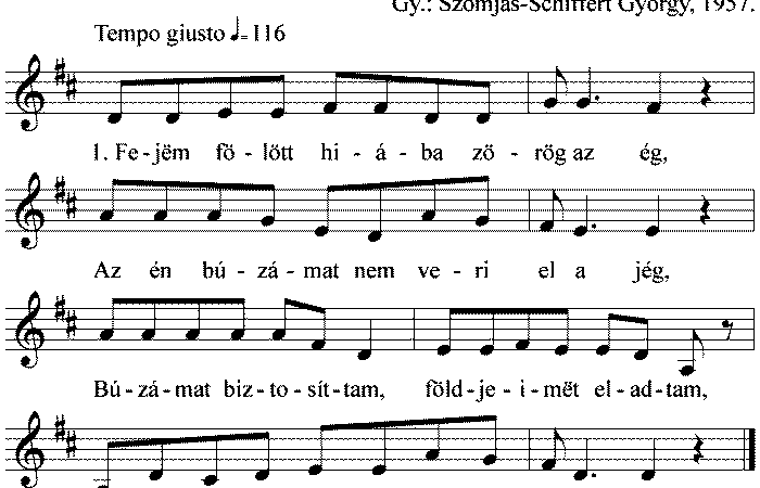 1. Fejëm fölött hiába zörög az ég, Az én búzámat nem veri el a jég, Búzámat biztosíttam, földjeimët eladtam, A...