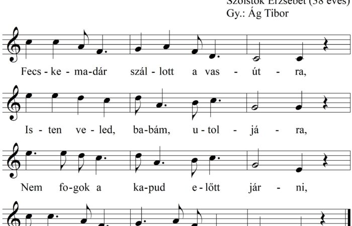 Fecskemadár szállott a vasútra (ének, alkalomhoz nem kötött dal, Felnőttek népdalai)