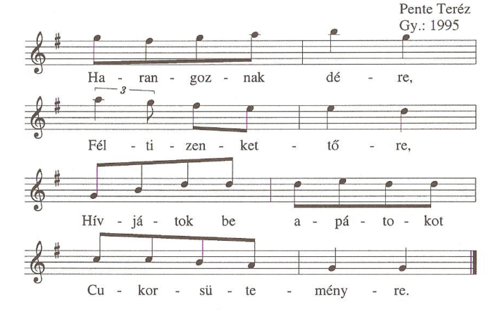 Harangoznak délre,Féltizenkettőre,Hívjátok be apátokotCukorsüteményre.