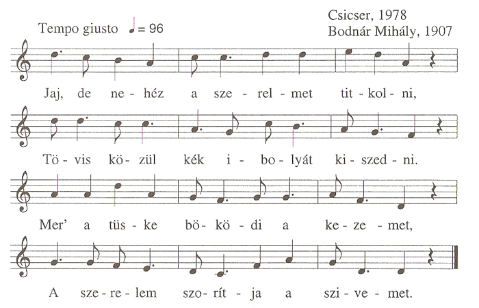 1. Jaj, de nehéz a szerelmet titkolni,Tövis közül kék ibolyát kiszedni.Mer' a tüske böködi a kezemet,A szerelem szorítja a szívemet.2....