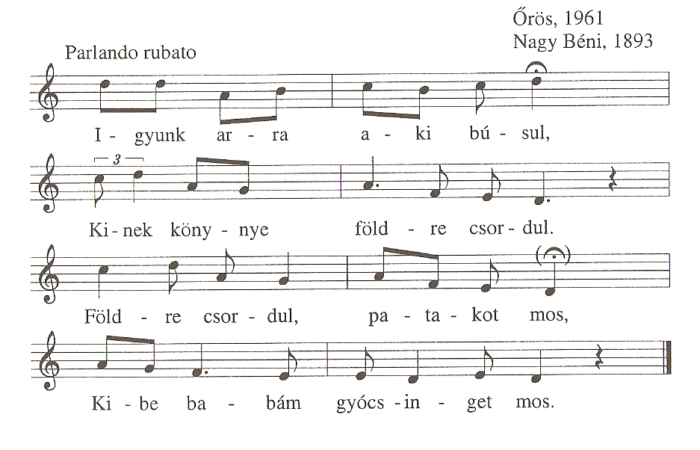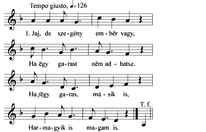 1. Jaj, de szegény ember vagy, Ha egy garast nem adhatsz. Ha jegy garas, másik is, Harmagyik is magam is....