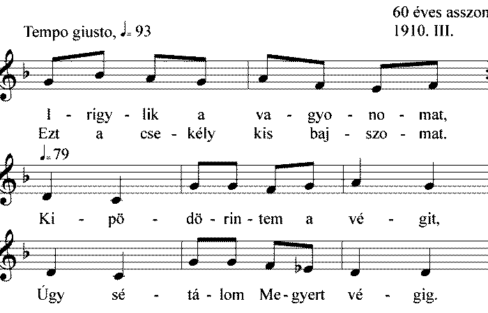1. Irigylik a vagyonomat, Ezt a csekély kis bajszomat. Kipödörintem a végit, Úgy sétálom Megyert végig. 2. Ha én aztat...