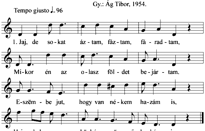 1. Jaj, de sokat áztam, fáztam, Mikor én az olasz földet bejártam, Eszëmbe jut, hogy van nékem hazám is, Hej,...