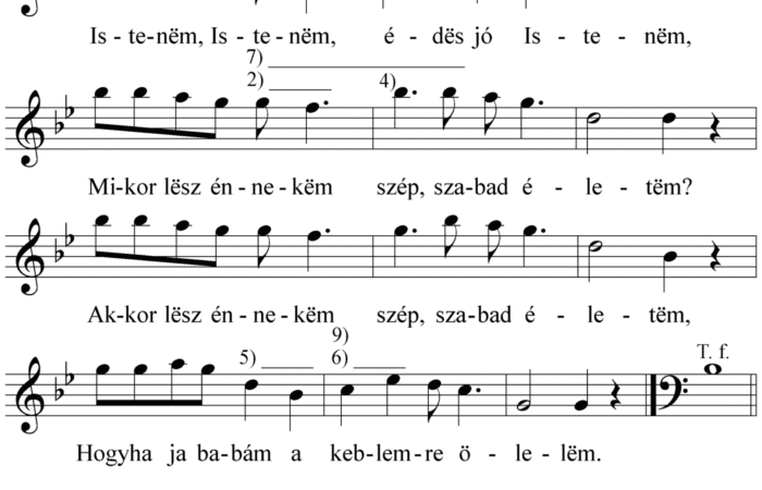 1. Istenëm, Istenëm, édes jó Istenëm, Mikor lësz énnekëm szép, szabad életëm? Akkor lësz énnekëm szép szabad életëm, Hogyha ja...