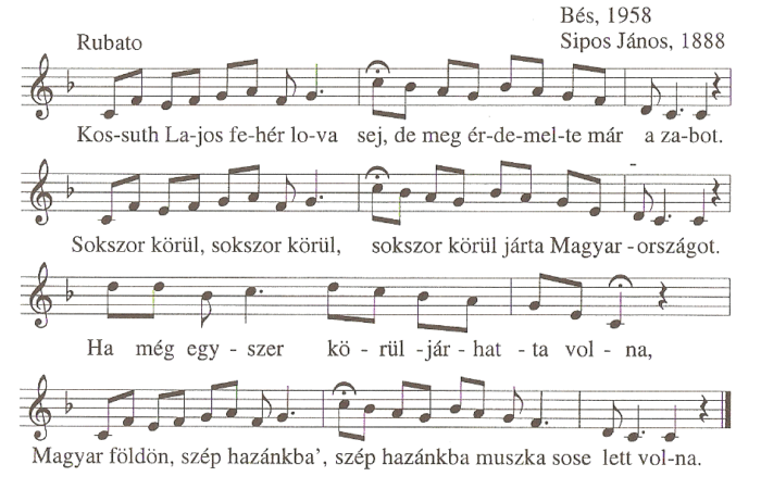Kossuth Lajos fehér lova sej de meg érdemelte már a zabot (ének, alkalomhoz nem kötött dal, Felnőttek népdalai)