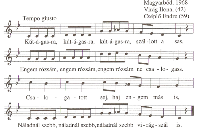Kútágasra kútágasra szállott a sas (ének, alkalomhoz nem kötött dal, Felnőttek népdalai)