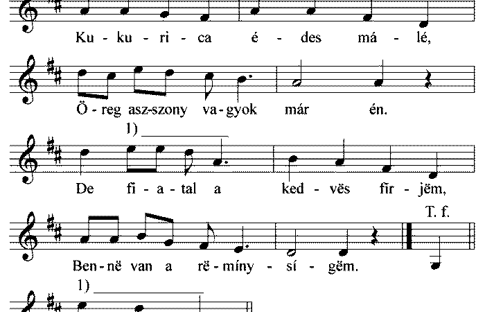 1. Kukorica édes málé, Öregasszony vagyok már én. De fiatal a kedves fírjem, Benne van a remínysígem. 2. Ha mégëgyszër...