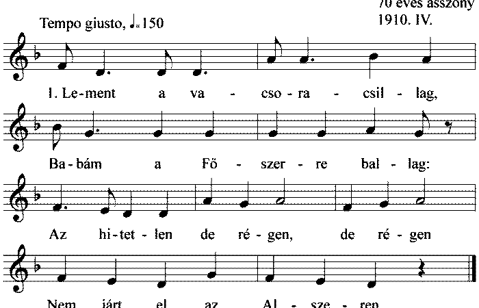 Lement a vacsoracsillag (ének, alkalomhoz nem kötött dal, Felnőttek népdalai)