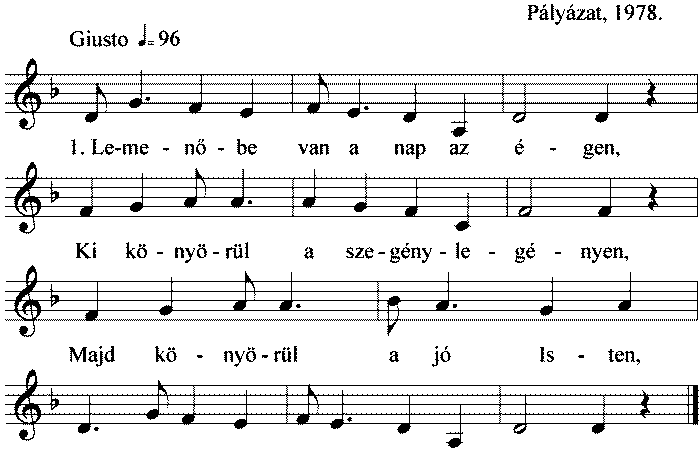 1. Lemenőbe van a nap az égen, Ki könyörül a szëgénylegényen, Majd könyörül a jó Isten, Ha faluba igaz kislány...