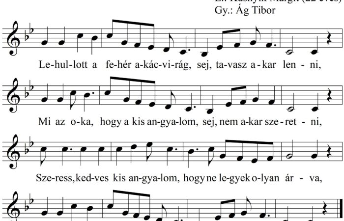 Lehullott a fehér akácvirág sej tavasz akar lenni (ének, alkalomhoz nem kötött dal, Felnőttek népdalai)