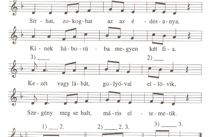 1. Sírhat, zokoghat az az édesanya,Kinek háborúba megyen két fia.Kezét vagy lábát, golyóval ellövik.Szegény meg se halt, máris eltemetik.2. Jön...