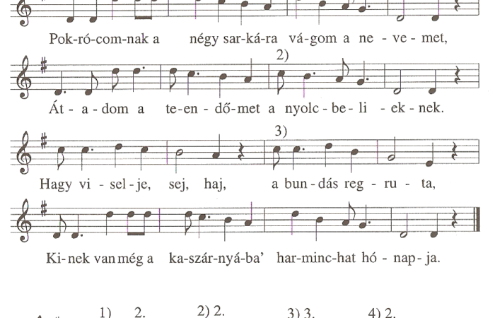 Pokrócomnak a négy sarkára vágom a nevemet (ének, alkalomhoz nem kötött dal, Felnőttek népdalai)