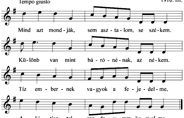 1. Mind azt mondják, sem asztalom, se székem. Különb van, mint bárónénak, az nékem. Tíz embernek vagyok a fejedelme, Aki tisztel,...