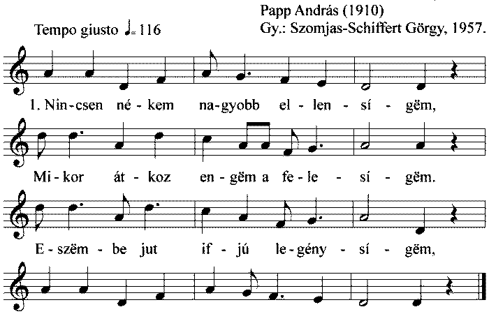 1. Nincsen nékem nagyobb ellensígëm, Mikor átkoz engëm a felesígëm. Eszëmbe jut ifjú legénységëm, Még az étel sëm esik jól...