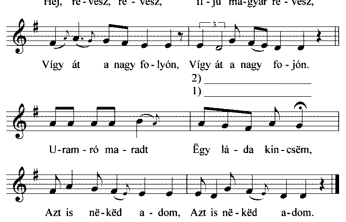 – Hëj, rívísz, rívísz, Ifjú magyar rívísz, Vigyé át a hajón. Nekëd adom, nekëd, Bizony nekëd adom Szíp selëmkendőmet. – Nëm...