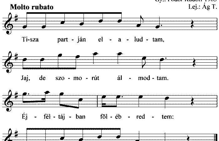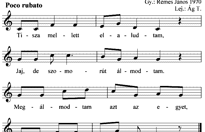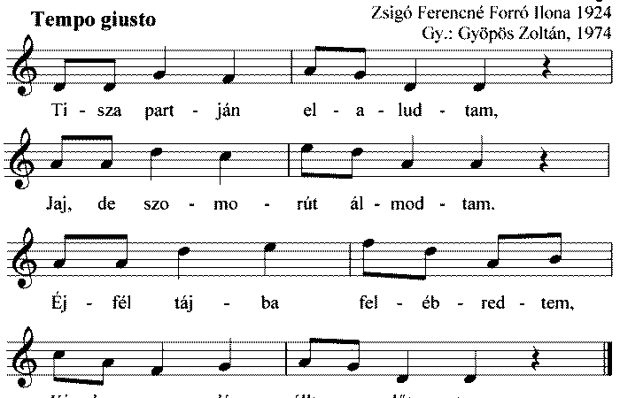 Tisza partján elaludtam, Jaj de szomorút álmodtam, Megálmodtam azt az egyet, Babám, nem leszek a tied. Reggel mikor felébredtem, Három...