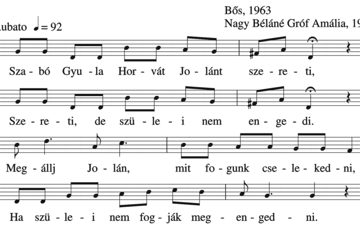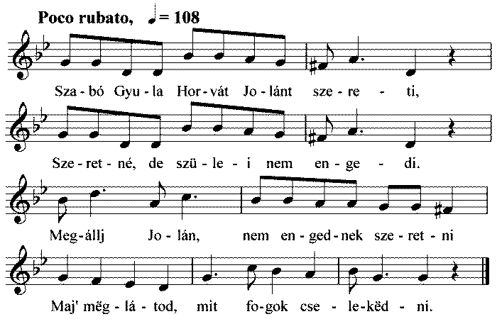 Szabó Gyula Horváth Jolánt szereti, Szereti, de szülei nem engedi. Megállj Jolán, mit fogunk cselekedni, Ha szülei nem fogják megengedni....