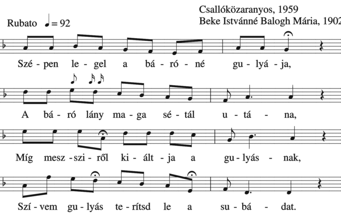 Szépen legel a báróné gulyája (ének, ballada, Felnőttek népdalai)