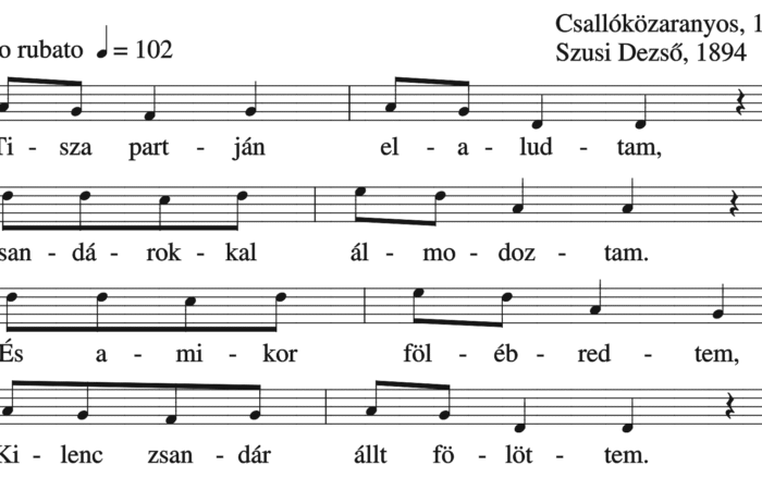 – Hëj révész, révész, Ifjú magyar révész, Vígy át a nagy folyón, Vígy át a nagy folyón. Uramról maradt, Ëgy...