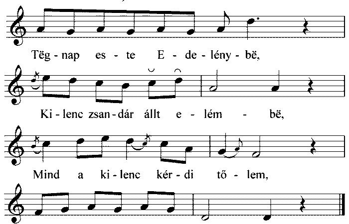 1. Tëgnap este Edelénybë, Kilenc zsandár állt elémbë, Mind a kilenc kérdi tőlem, Van-ë utazó levelëm. 2. Várjál zsandár, mëgmutatom,...